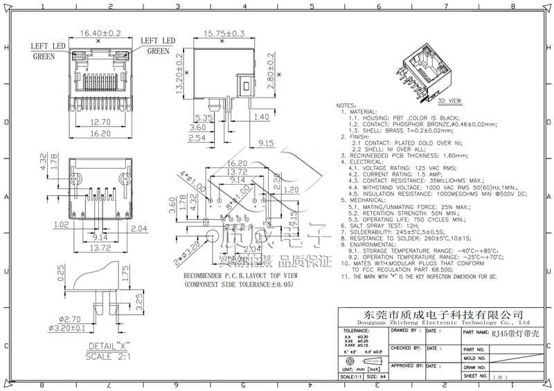RJ45沉板式SMT型全包母座不帶燈 網絡接口插座連接器帶屏蔽耐高溫