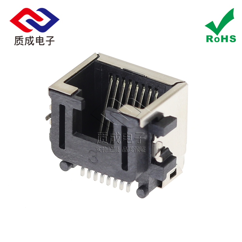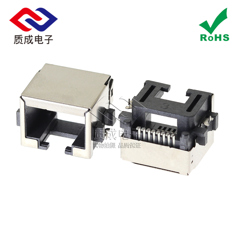 RJ45沉板式SMT型全包母座不帶燈 網絡接口插座連接器帶屏蔽耐高溫