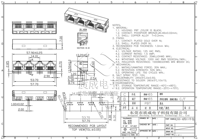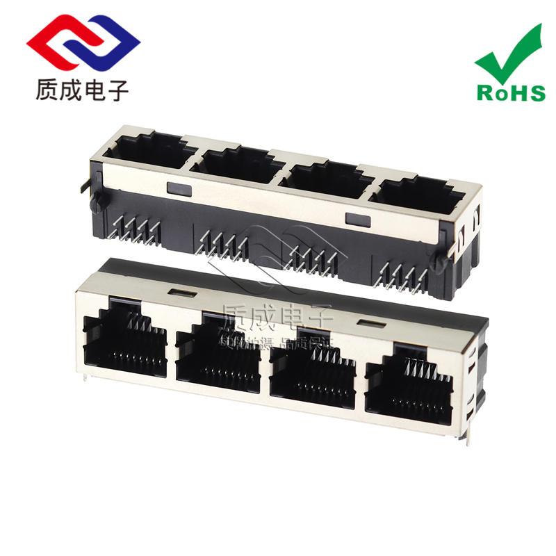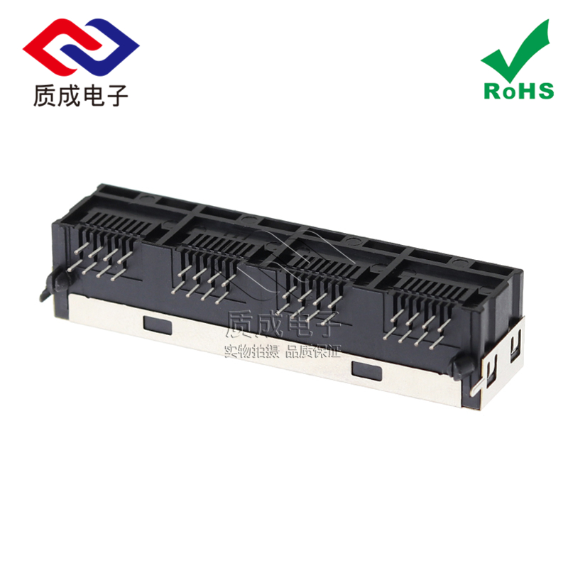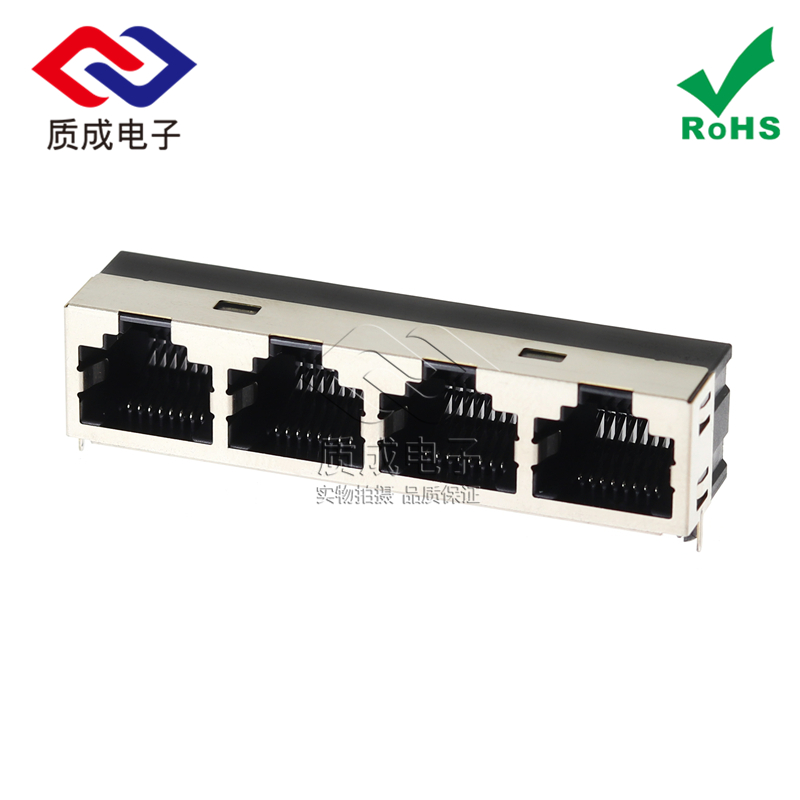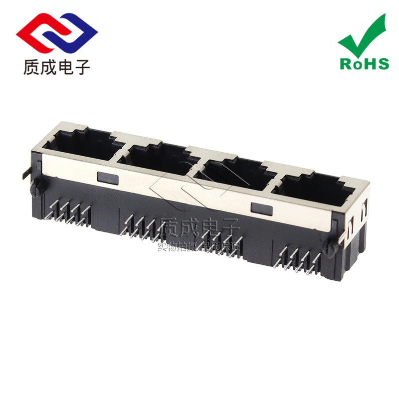 RJ45連接器半包銅殼POE交換機(jī)接口 網(wǎng)絡(luò)通訊傳輸四口帶屏蔽插座