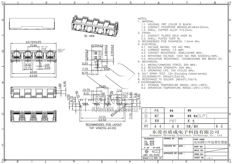 RJ45沉板式SMT型全包母座不帶燈 網絡接口插座連接器帶屏蔽耐高溫