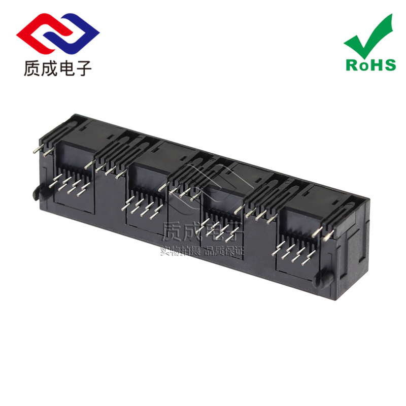 迷你RJ二號黃色全塑四口聯排連接器90度插板PCB插座網絡光纖端口