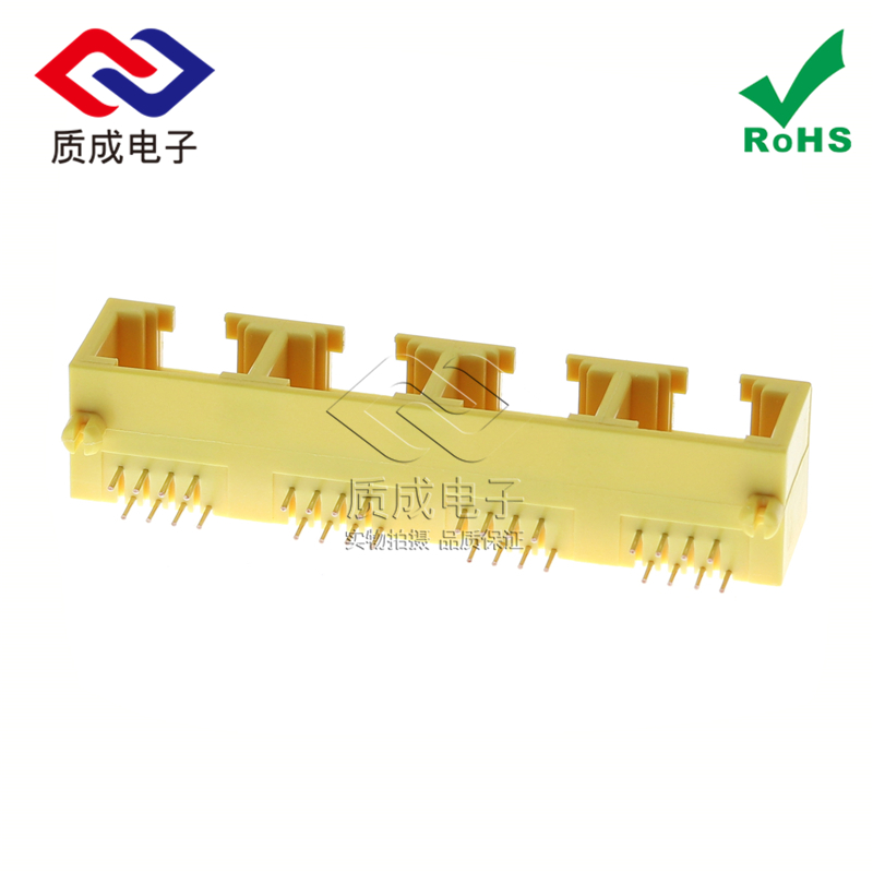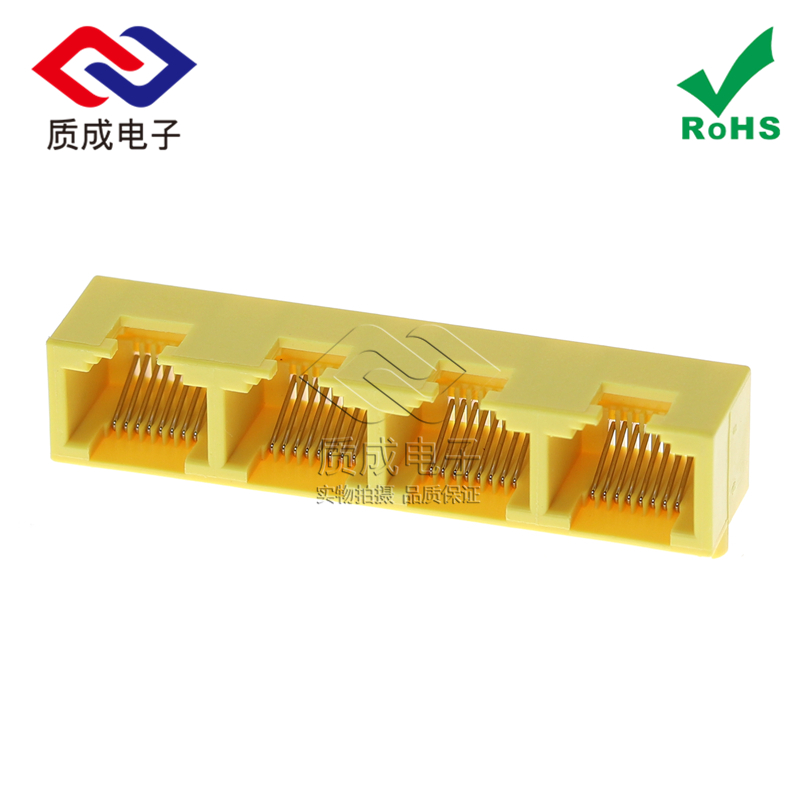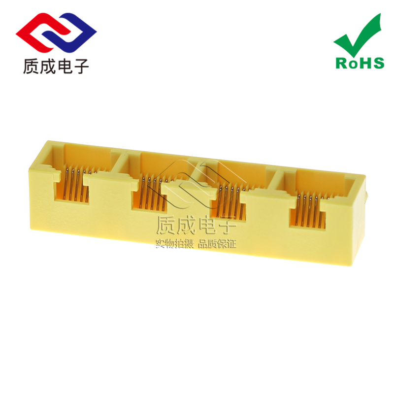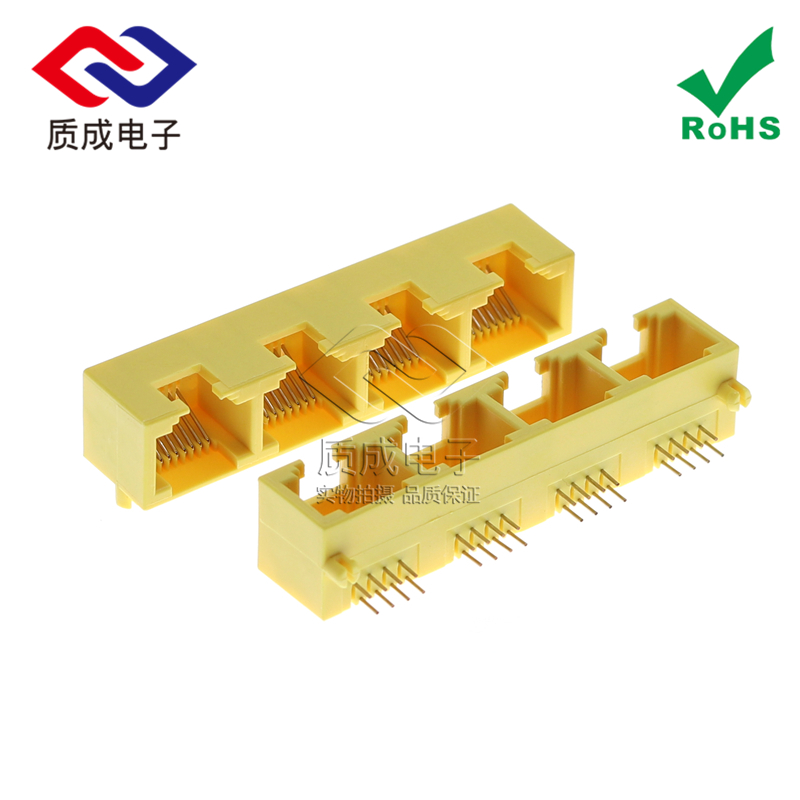 迷你RJ二號黃色全塑四口聯排連接器90度插板PCB插座網絡光纖端口