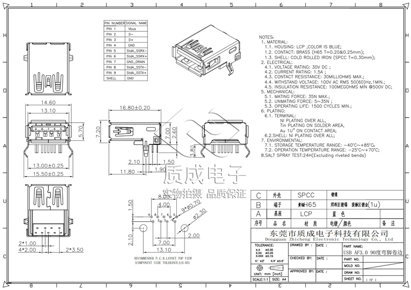• 型號:USB AF3.0 90度彎腳卷邊