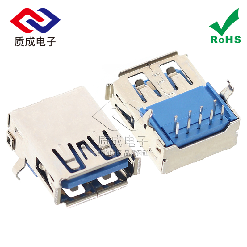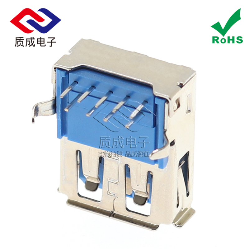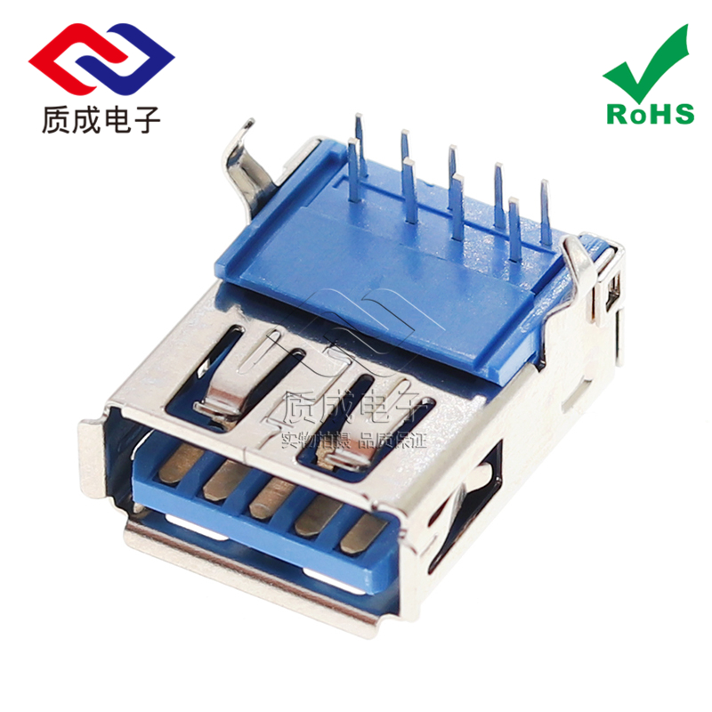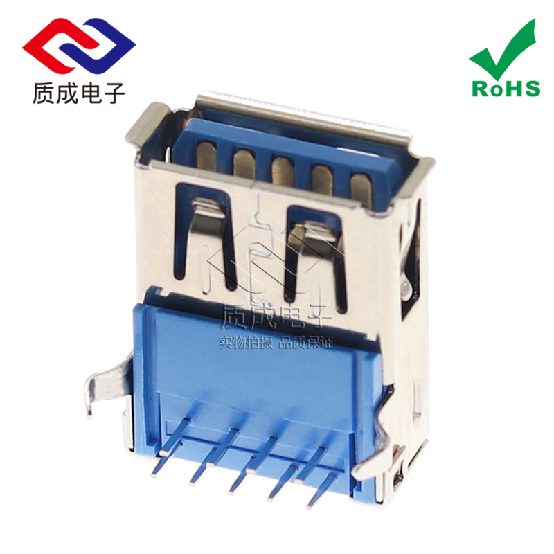 3.0AF母座90度側插 USB接口藍膠卷邊彎腳插件 網絡傳輸接口連接器