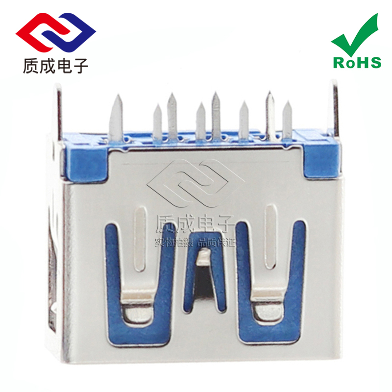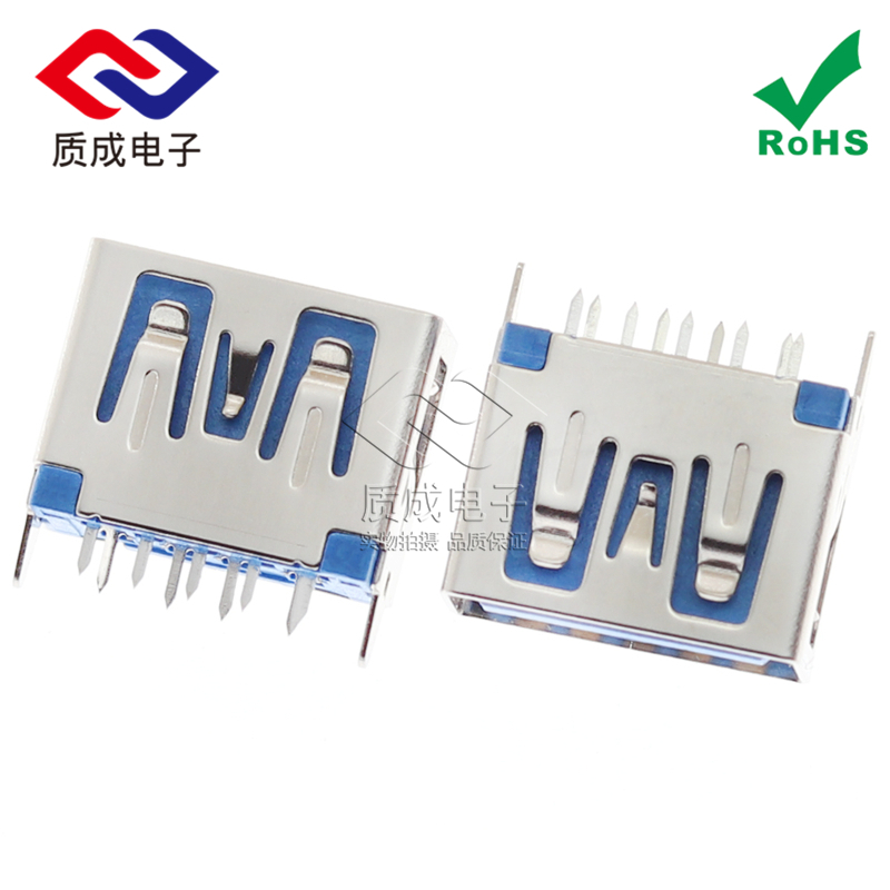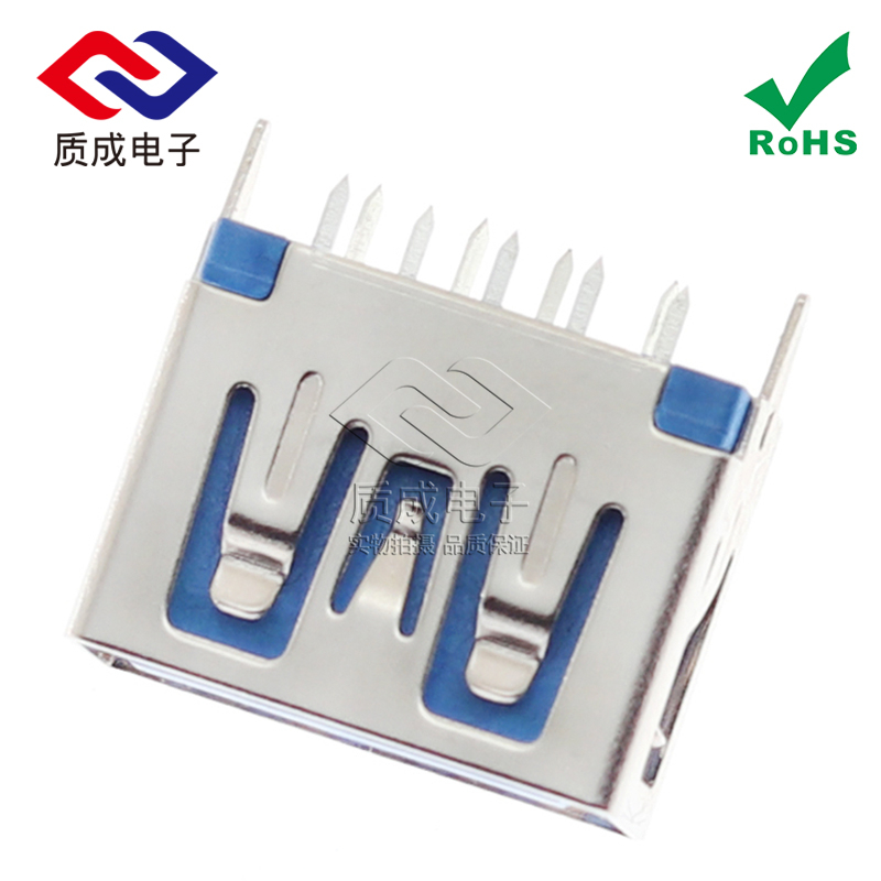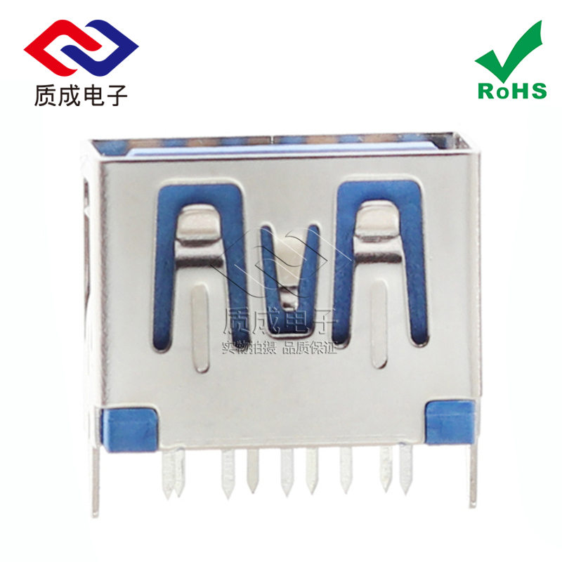 AF3.0短體母座10.0L 立式180度直插USB連接器 直腳平口藍膠鐵殼