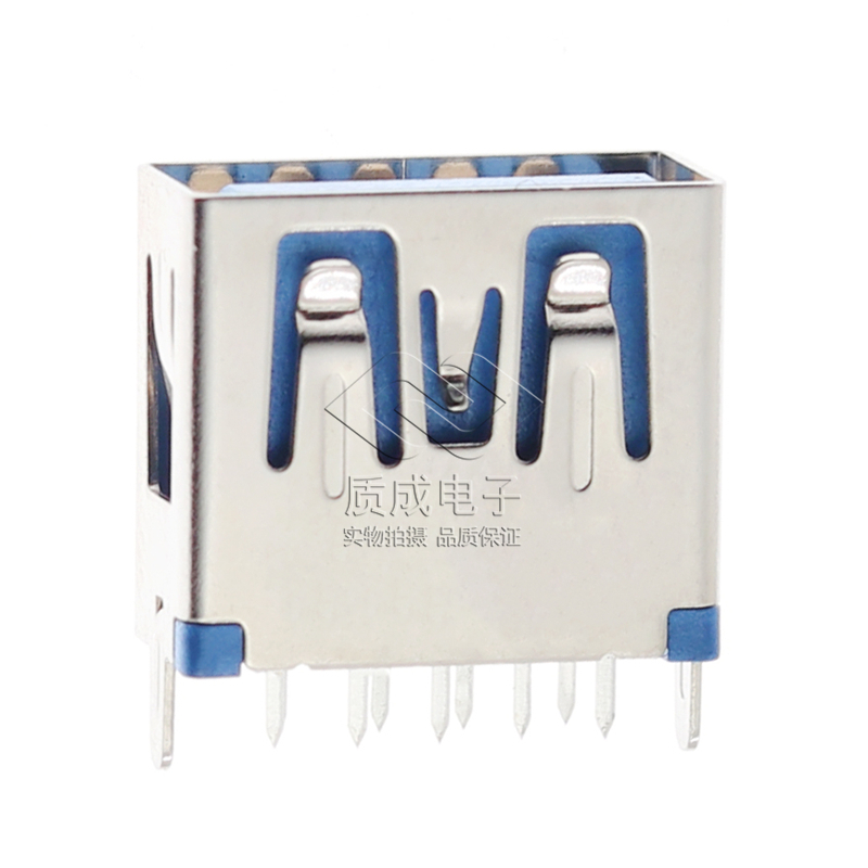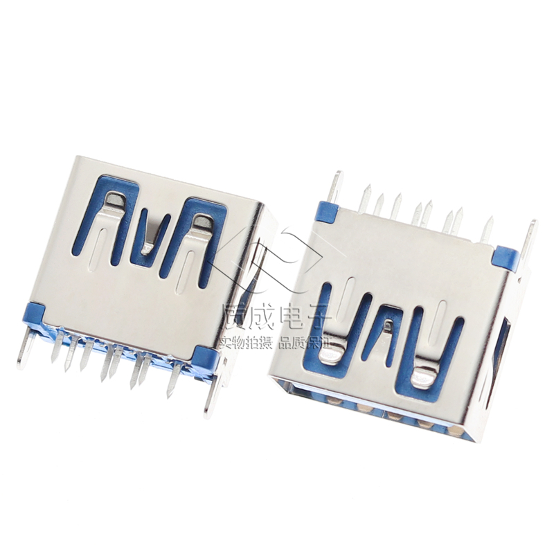 USB 3.0母座短體180度11.5L直腳插板連接器 藍(lán)膠平口充電USB接口