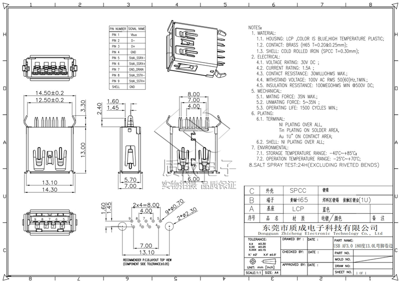 • 型號:USB AF3.0 180度13.0L彎腳卷邊