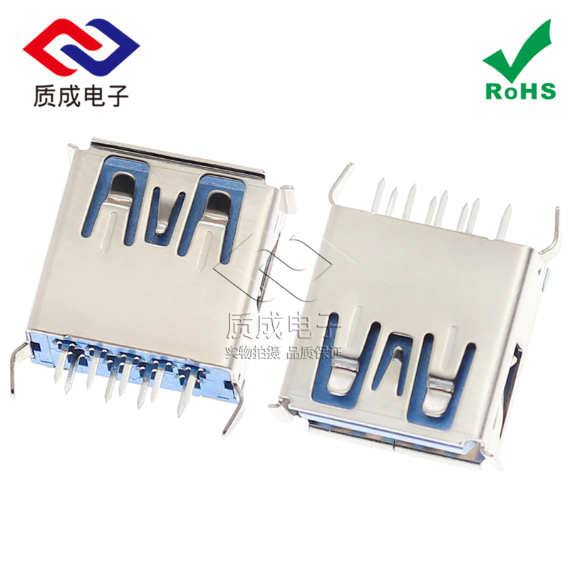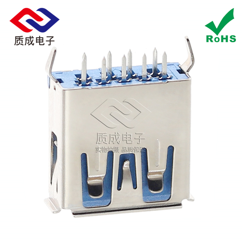 USB3.0母座插座 180度立式L=13.0MM彎腳卷邊 9PIN直插DIP藍膠鐵殼