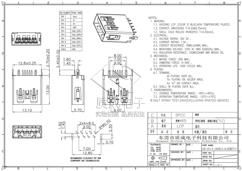 USB網(wǎng)絡(luò)連接器接口3.0母座 臥式DIP沉板9PIN直腳平口 LCP耐高溫