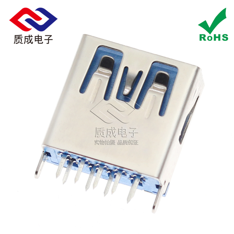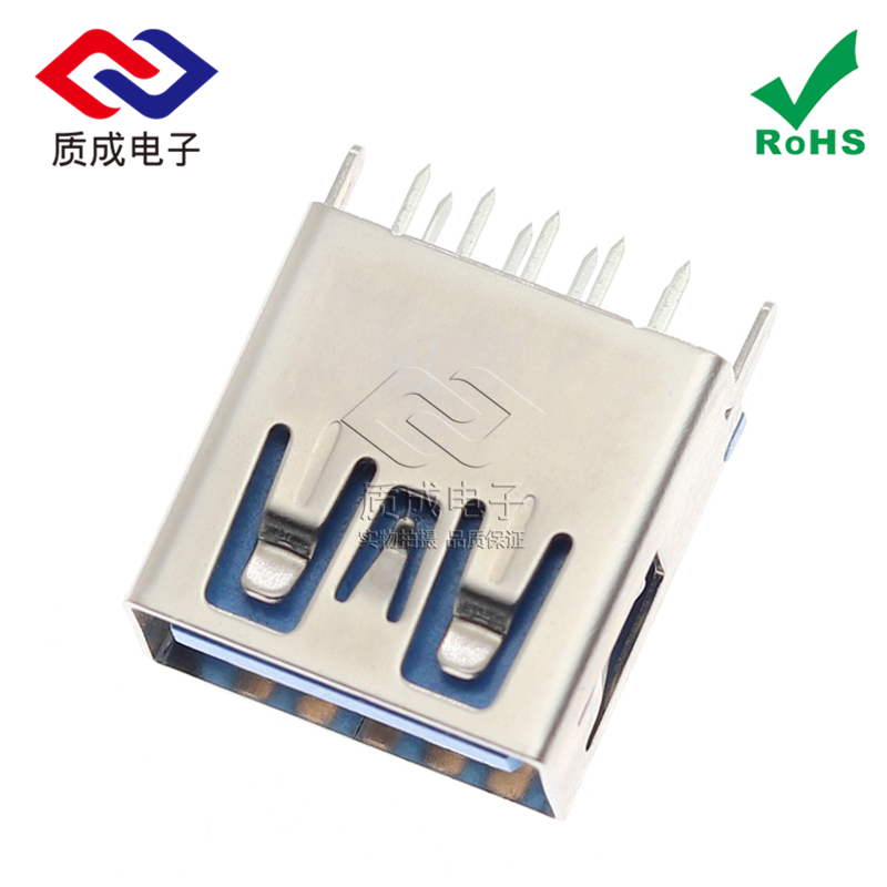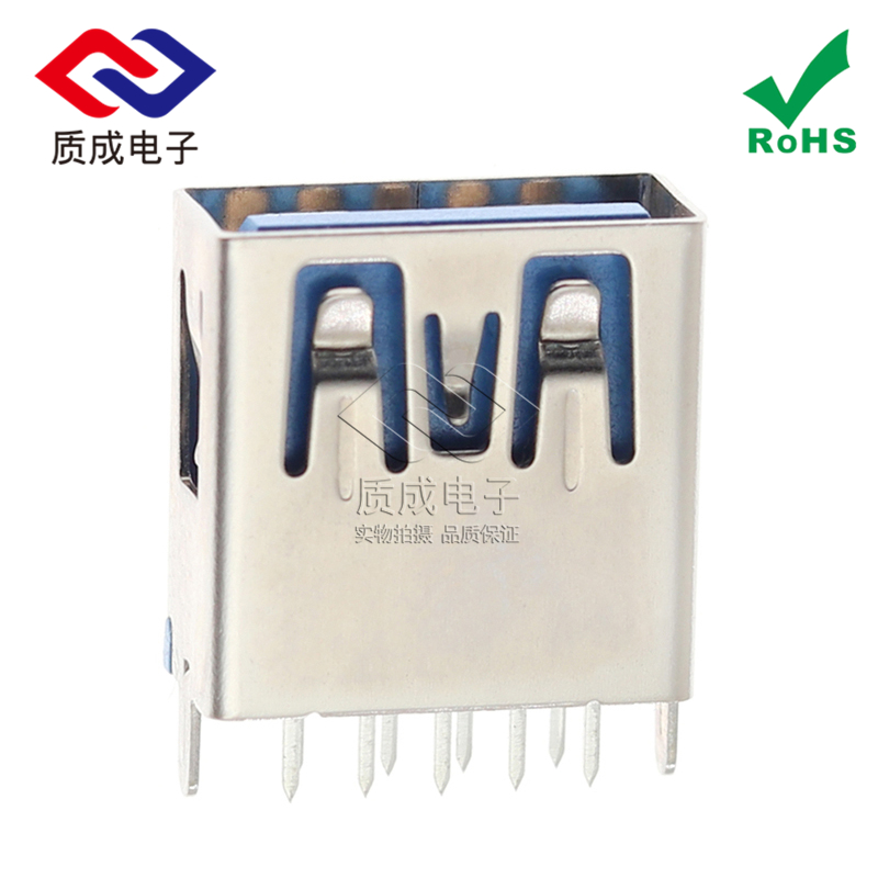 USB AF 3.0 9PIN母座接口高速傳輸 90度貼板SMT直腳卷邊 藍(lán)色膠芯