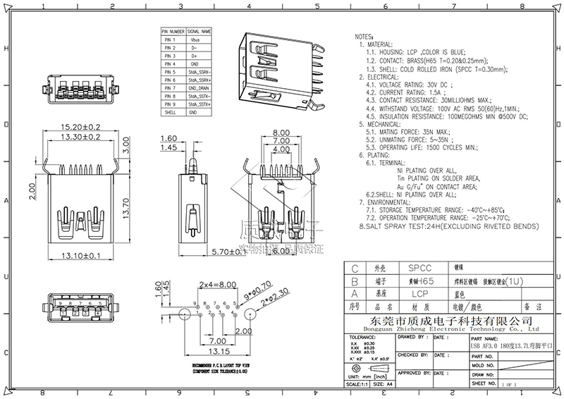 • 型號:USB AF3.0 180度13.7L彎腳平口