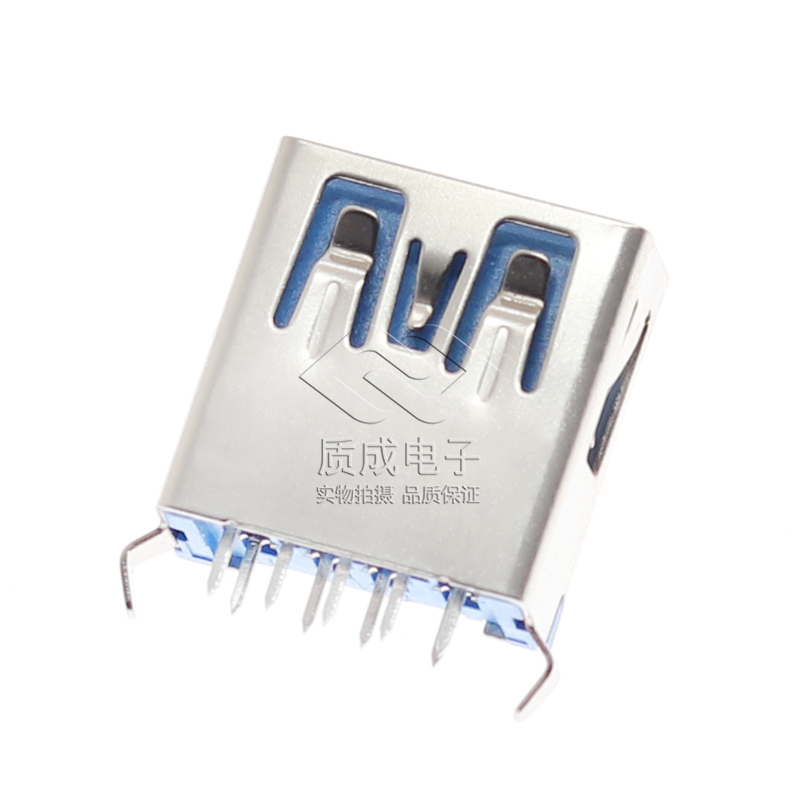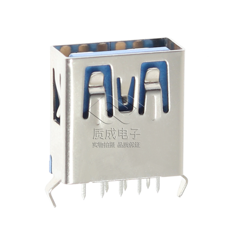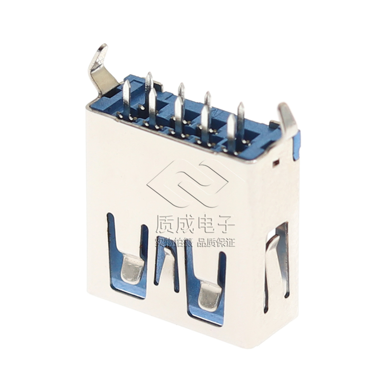 AF3.0立式直插L=13.7MM 彎腳平口藍色膠芯USB插座連接器雙排DIP