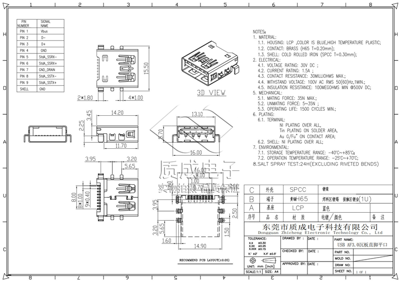• 型號(hào):USB AF3.0沉板直腳平口