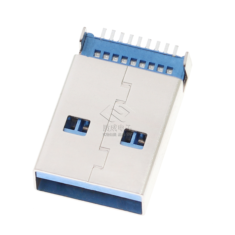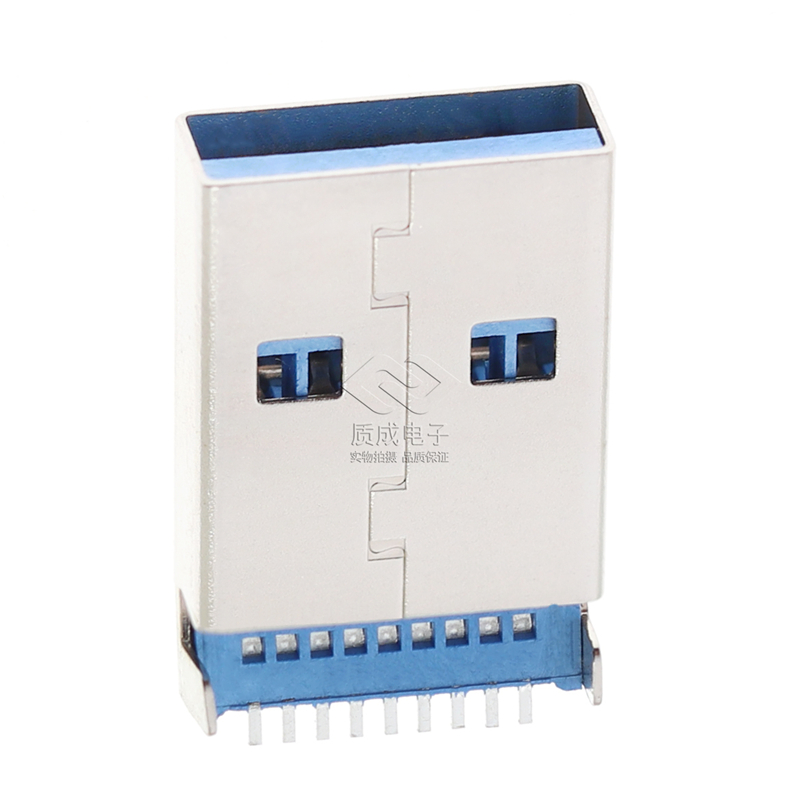 USB 3.0沉板公頭9PIN連接器貼片SMT 藍(lán)色膠芯插座直腳中針U盤(pán)接口