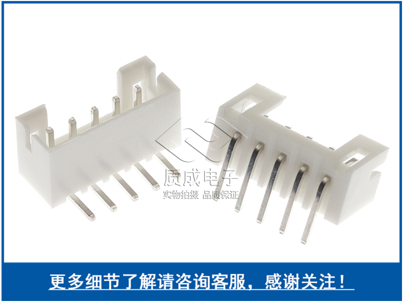 質(zhì)成廠家直供針座連接器PH2.0間距5P插件90度2.0-5AW銅彎針白色