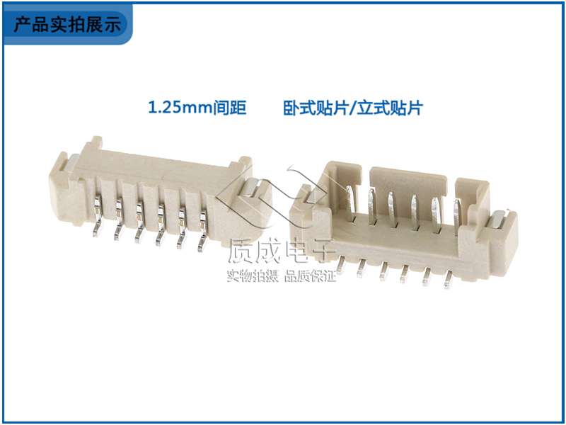 MX1.25-5P臥貼針座連接器1.25-5A臥式貼片板對(duì)線端子插座米色LCP