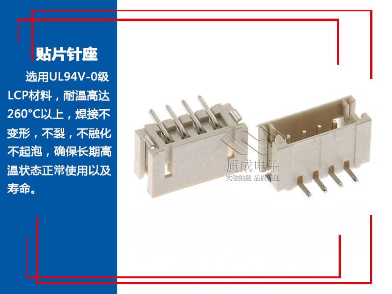 ZH1.5mm間距4P立式貼片端子 1.5-4A立貼加蓋米色耐高溫針座連接器