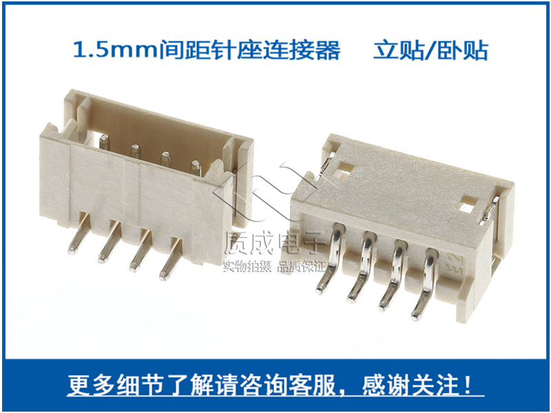 貼片針座1.5間距立貼連接器 ZH1.5-5P/1.5-5A立式接線端子SMT編帶