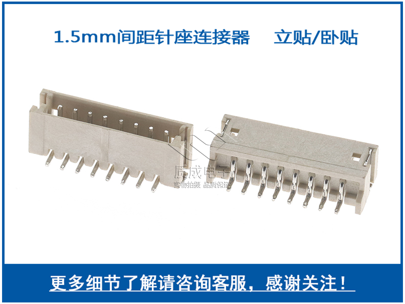 臥貼針座1.5-8P條形連接器 SMT貼片接線端子母座 ZH臥式插針插座