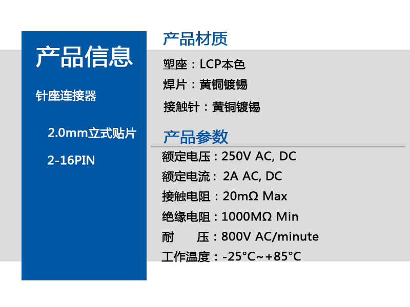 針座連接器2.0間距立式貼片 2.0-5P/2.0-5A立貼針座 PH立貼板對線