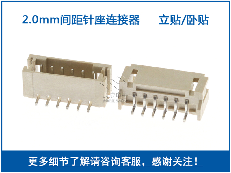 wafer針座連接器 2.0間距6P臥貼 臥式貼片線束接插件 編帶耐高溫