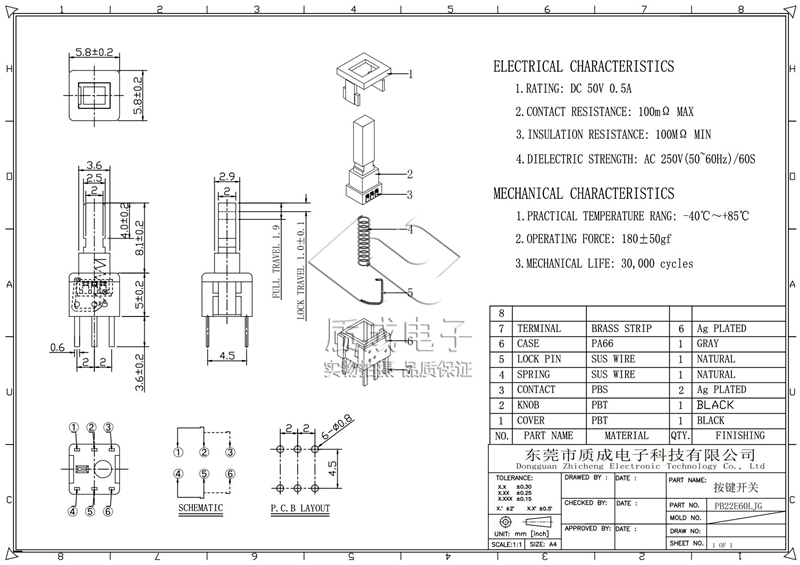 插件自鎖開關(guān)PB-22E6耐高溫PPA白色底座