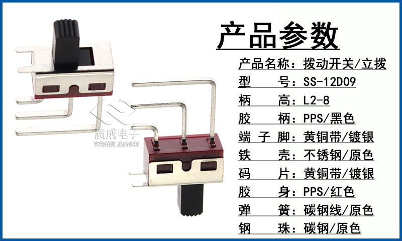 SS-12D09立式撥動開關 單排3腳兩檔90度彎腳 柄高L2-8MM滑動開關
