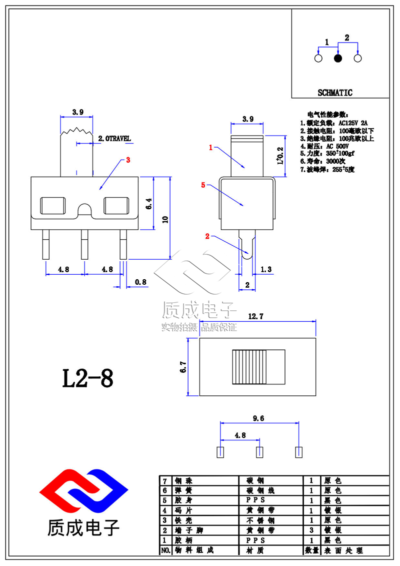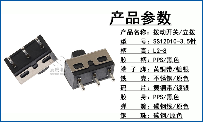 廠家供應(yīng)1P2T撥動(dòng)開(kāi)關(guān)單排三腳SS-12D10 卷發(fā)器電源滑動(dòng)開(kāi)關(guān)耐溫