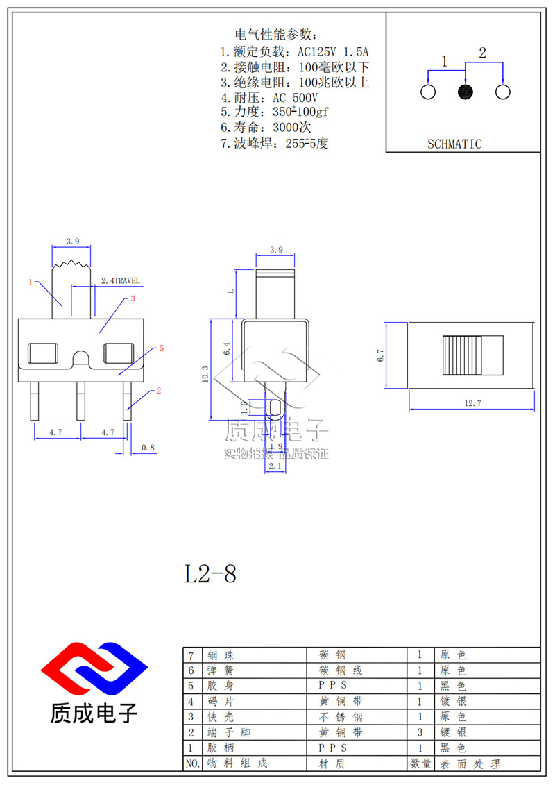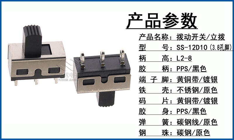 廠家供應1P2T撥動開關(guān)單排三腳SS-12D10 卷發(fā)器電源滑動開關(guān)耐溫