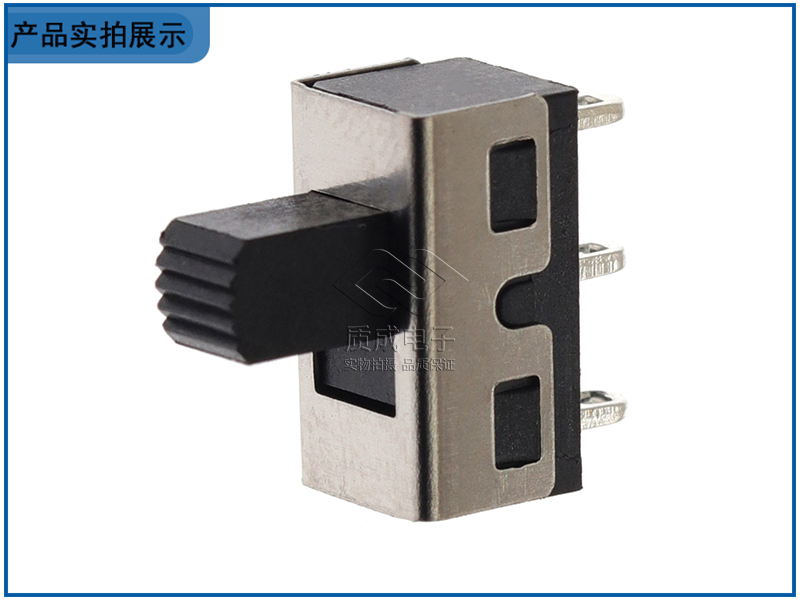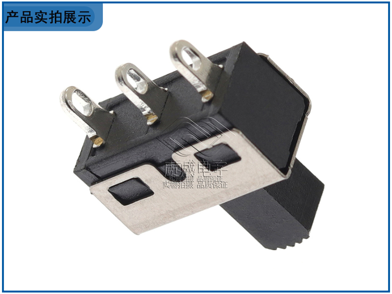 波段兩檔撥動開關(guān)立式左右滑動 單排三腳針腳SS-12F17 黑色塑殼