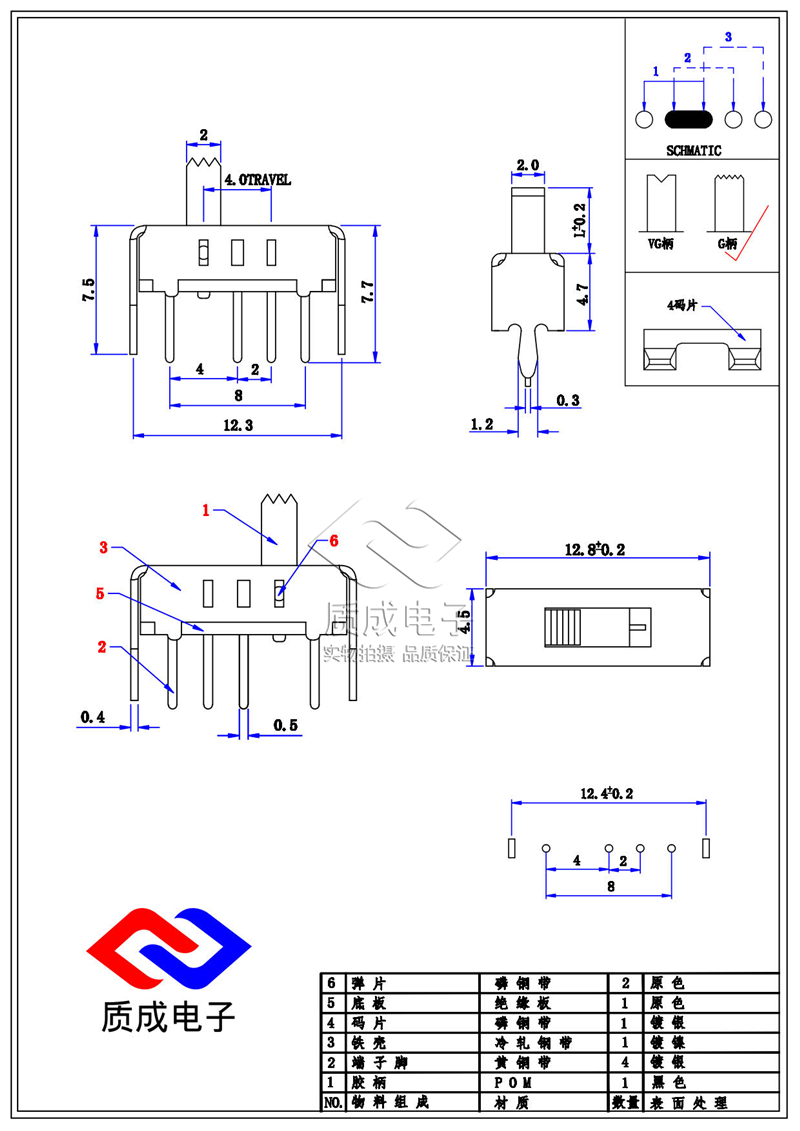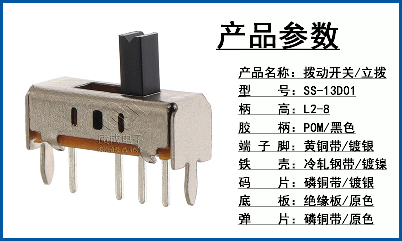 廠家供應(yīng)1P2T撥動(dòng)開(kāi)關(guān)單排三腳SS-12D10 卷發(fā)器電源滑動(dòng)開(kāi)關(guān)耐溫