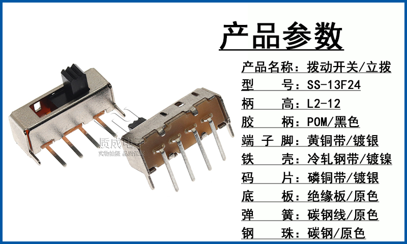 撥動開關4腳彎腳三檔SS-13F24(1P3T)柄高L2-12帶支架儀表設備開關
