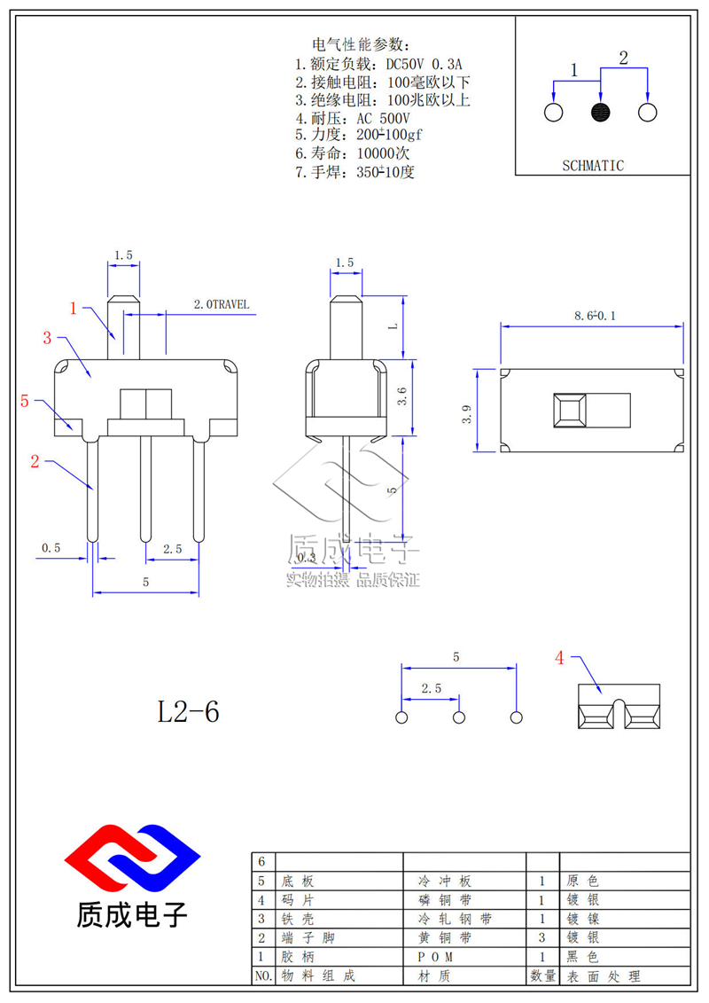 SS-14D01單排六腳帶支架撥動開關 立式插件四檔 燈飾耐溫推動開關