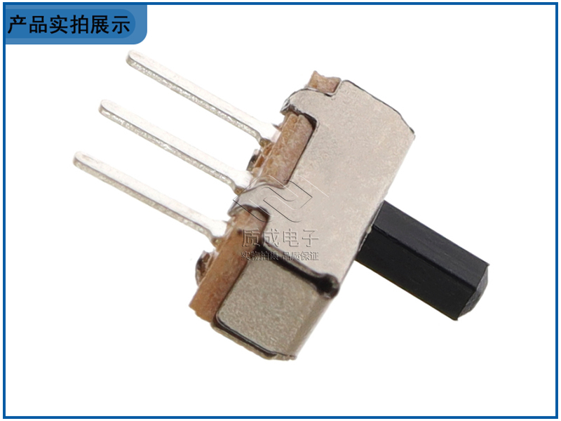 波段兩檔撥動開關立式左右滑動 單排三腳針腳SS-12F17 黑色塑殼