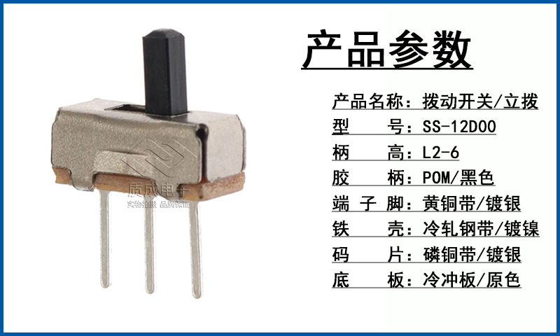 廠家供應1P2T撥動開關單排三腳SS-12D10 卷發器電源滑動開關耐溫
