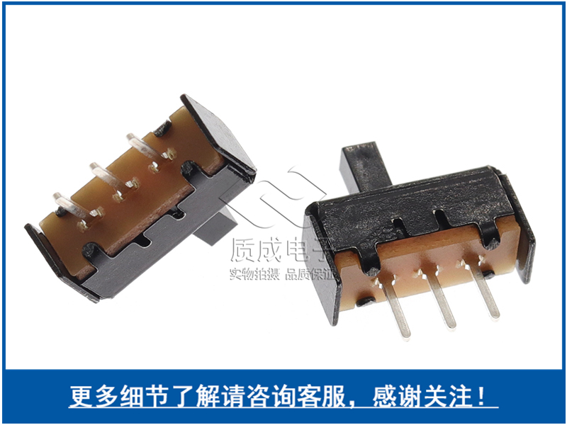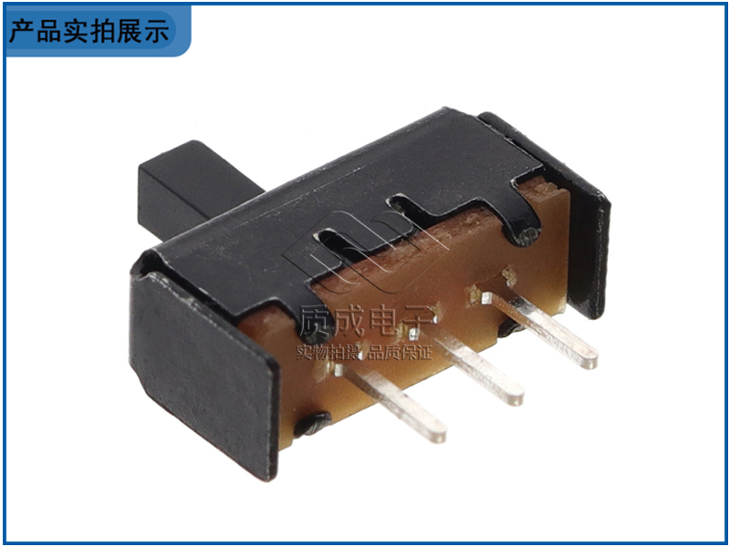 波段兩檔撥動開關立式左右滑動 單排三腳針腳SS-12F17 黑色塑殼