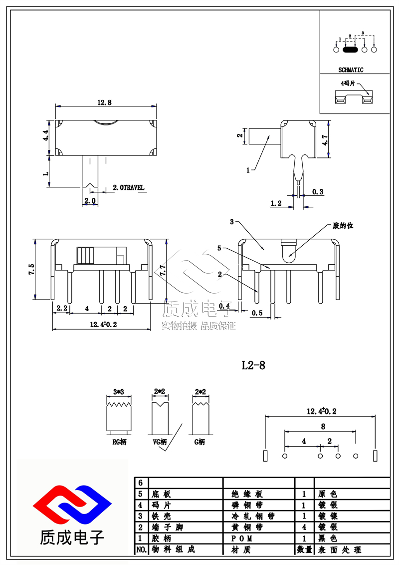 撥動開關SK-13D07 柄高L2-8 側撥四腳單極3位儀器設備推動開關