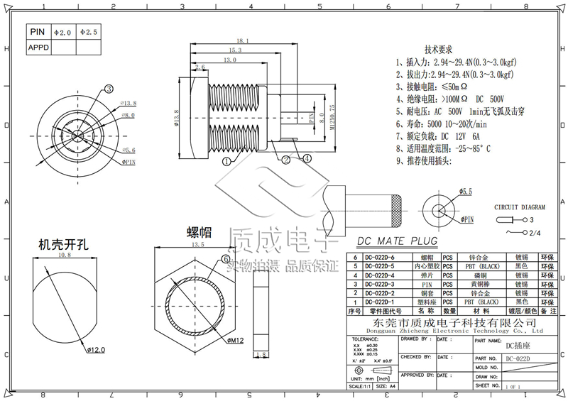 DC-050-2.0針?biāo)哪_臥式貼片大電流電源插座 耐高溫助燃