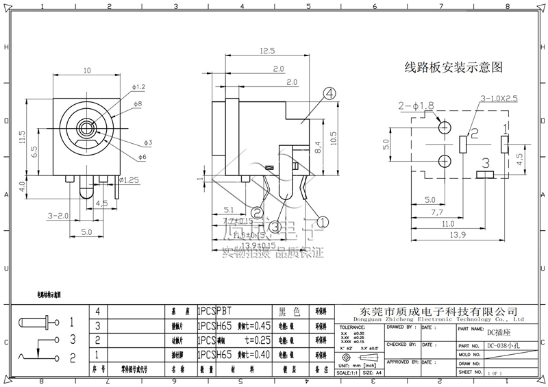 DC-050-2.0針?biāo)哪_臥式貼片大電流電源插座 耐高溫助燃