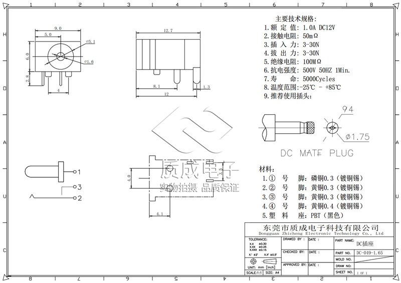 • 型號:DC-049-1.65