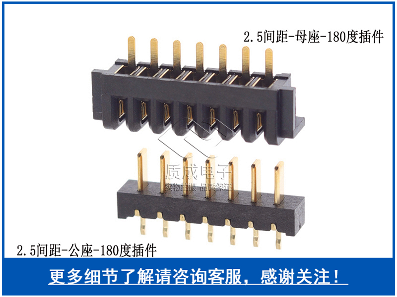 廠家直供刀片電池連接器 2.5間距7P貼片母座 鍍金3-12P公母接插件