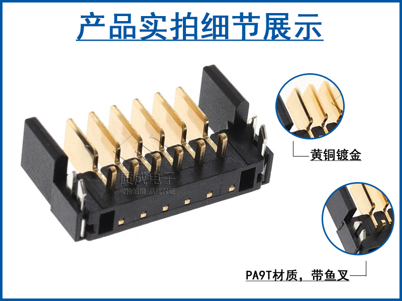 筆記本電池連接器2.0間距6P公座90度側插帶魚叉 ZC-06P20HHC