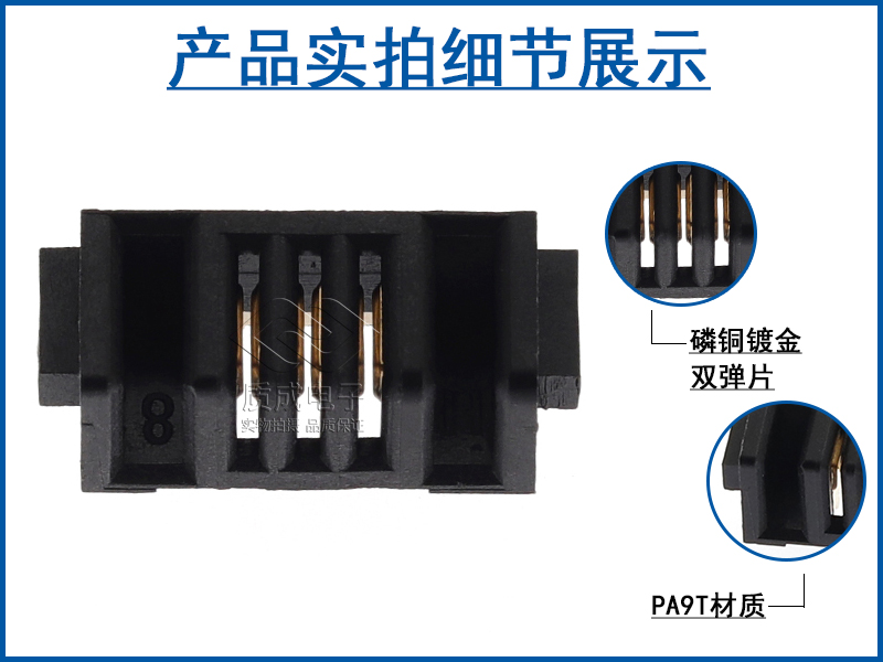 金手指電池連接器母座2.0間距8Pin直插 ZC-08P20MLHL導(dǎo)航儀充電座