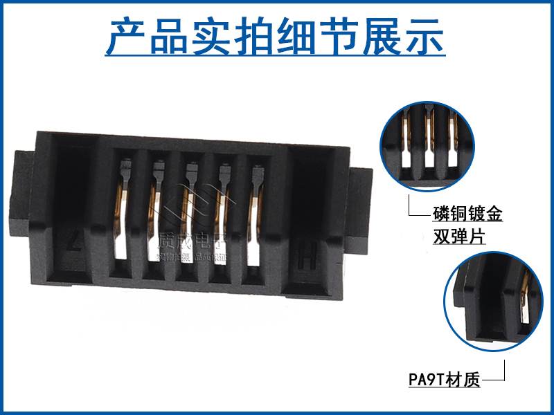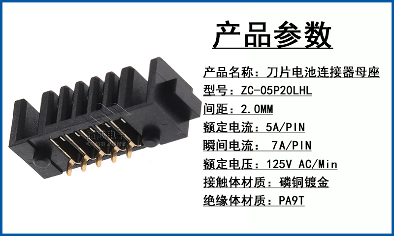 2.0間距母座5PIN刀片式電池連接器雙彈片 ZC-05P20LHL智能門鎖
