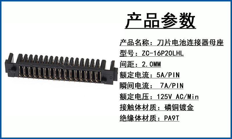 刀片式板對(duì)板電池連接器ZC-02P20MLHL間距2.0mm母座180度插件矩形
