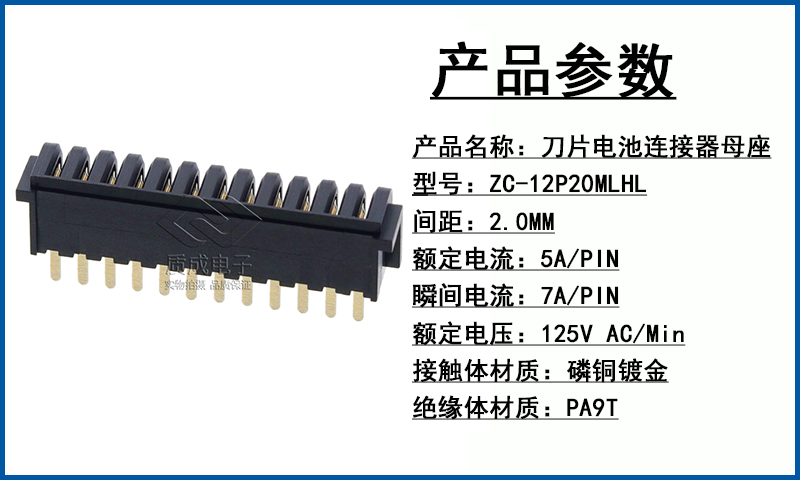 刀片式板對(duì)板電池連接器ZC-02P20MLHL間距2.0mm母座180度插件矩形