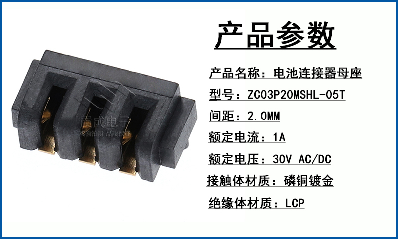3P電池連接器母座2.0MM間距 貼片玩具無人機寵物飲水機接口電池座