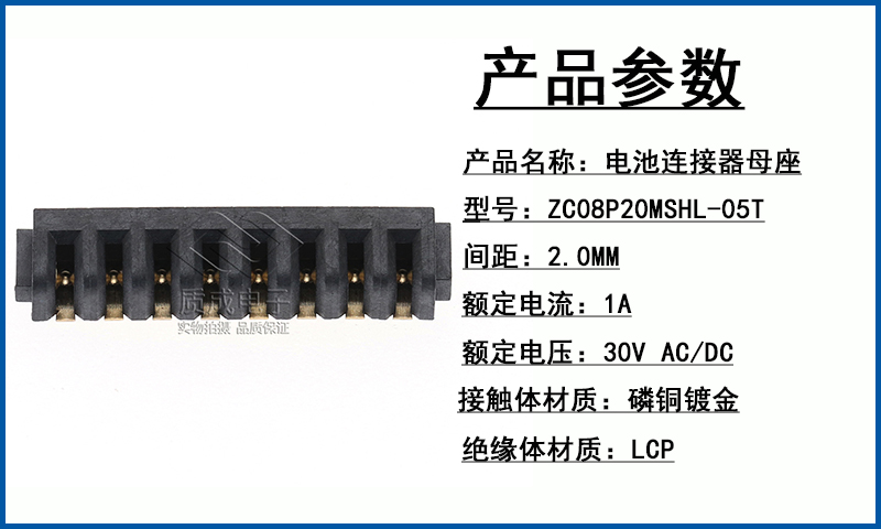 2.0間距8PIN母座刀片式電池連接器 鍍金貼片大電流智能門鎖接口座