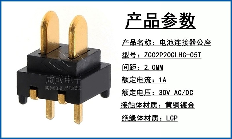 2.0間距2P電池連接器公座 迷你刀片式小型插件玩具、筆記本電池座