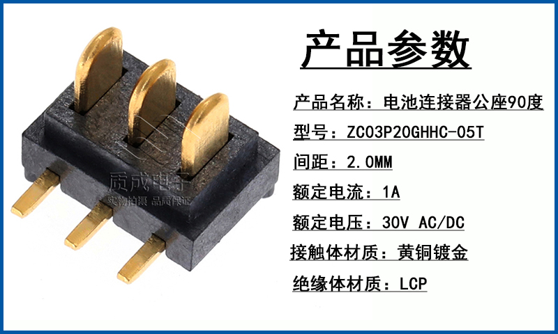 90度2.0間距3P公座刀片式電池連接器小型臥式插件迷你電源接插件
